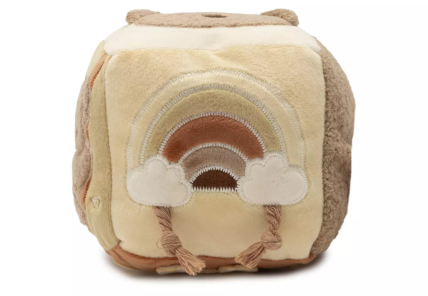 På kuben sitter en ögla med en plastring, så att du enkelt kan fästa den på till exempel barnvagnen, babysittern, sängen eller skötbordet.