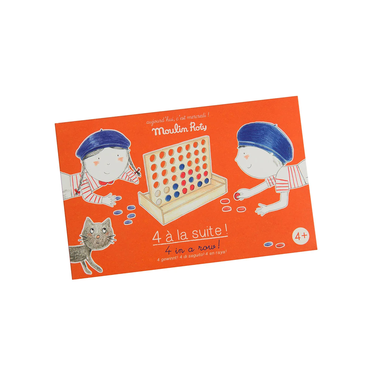 Det klassiska spelet 4 i rad, med 42 pjäser i två färger, en färg för varje spelare. Den första spelaren som får 4 pjäser i rad antingen horisontellt, vertikalt eller diagonalt vinner spelet!