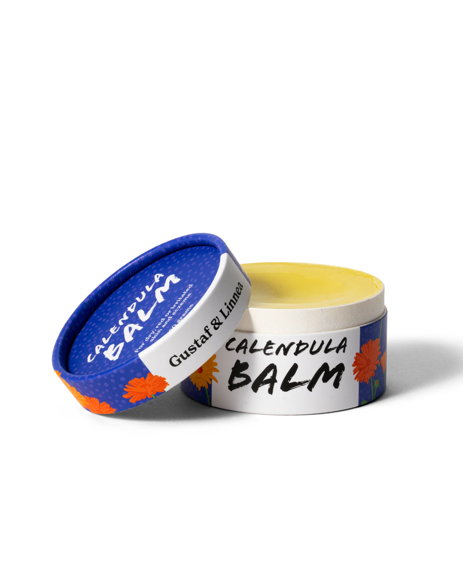 Ringblomssalvan kommer i en högtålig och miljövänligare pappförpackning i vacker design av soliga ringblommor. Varje salva är tillverkad för hand med omsorg på Gotland av ett litet familjeföretag med passion för hållbarhet.