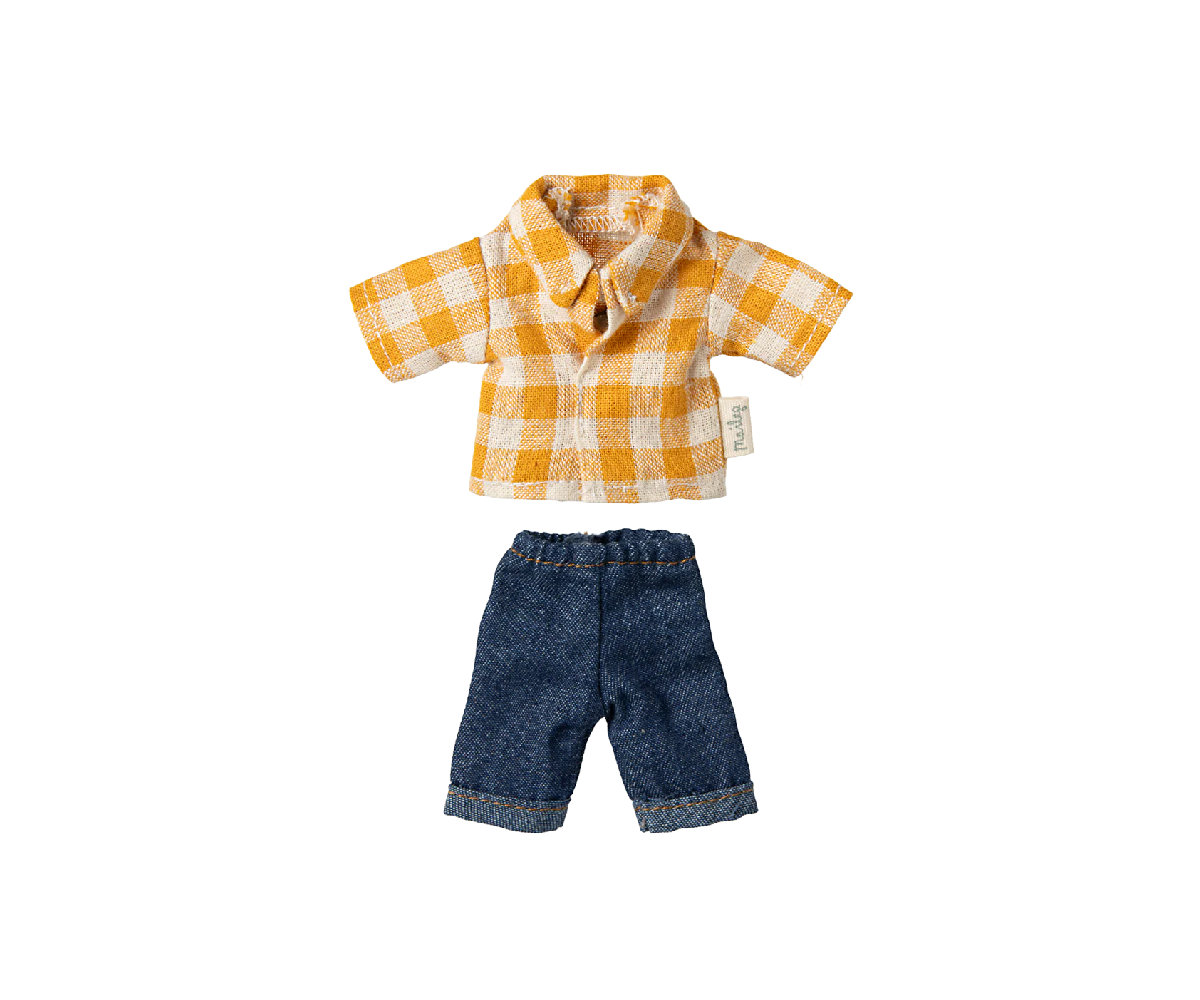 Mjuka och fina kläder som passar perfekt till Pappa Mus. Setet består av en snygg rutig skjorta och matchande byxor.