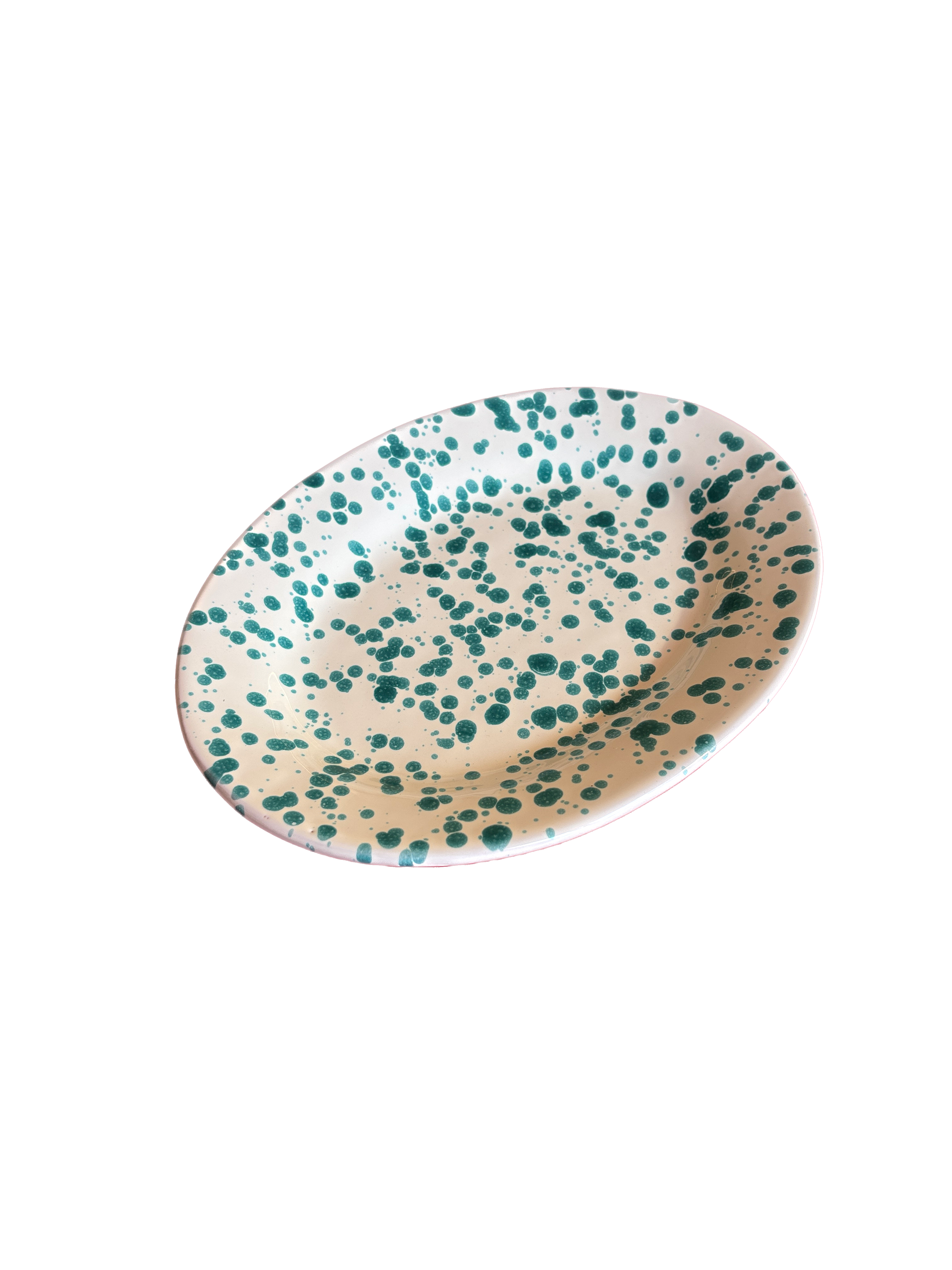 Keramik tillverkad av familjen Benigiamo i Apulien, södra Italien. Familjen har producerat keramik sedan mitten på 1650-talet, och ”Spruzzi” kallas det klassiska italienska prickmönstret. All keramik är handmålad och ger varje föremål sitt alldeles egna unika utseende.